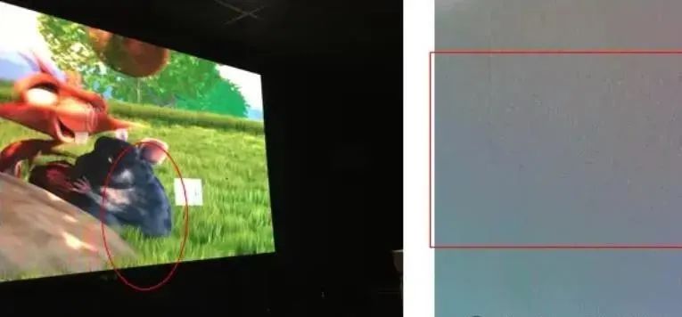 另外,由于灯板或箱体多批次混用的,或由于灯珠老化程度不同,造成以模组或箱体为单位的亮色度明显差异,我们称为马赛克现象,如下图所示。