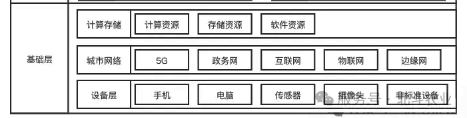 基础层包括:设备层、城市网络、计算存储共同组建而成。