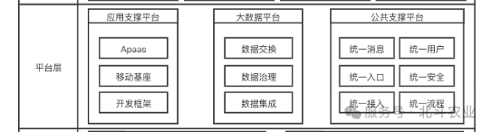 平台层包括:应用支撑平台、大数据平台、公共支撑平台。