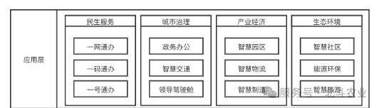 应用层,指的是各行业内的最终产品的具体表现,是智慧城市信息公共平台的价值体现,将根据各个行业自身特点,结合行业需求,形成专业化的服务平台或终端,直接为行业用户提供专业性服务,实现信息应用的精细化、实用化和智能化。