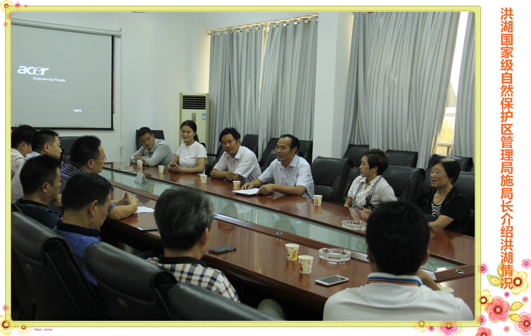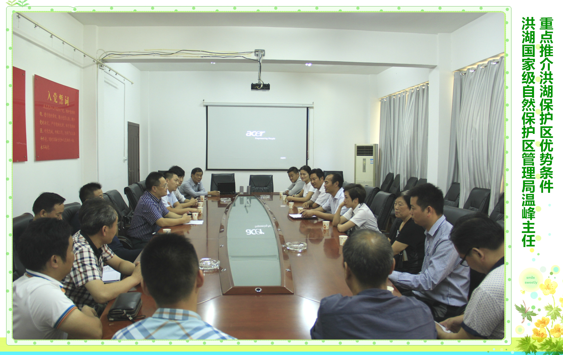 施局长在讲话中强调,洪湖生态保护的目的是科学合理利用,积极响应习近平总书记“共抓大保护,不搞大开发”的号召,既要促进持续、健康、绿色发展,又要加快洪湖地区小康社会建设步伐,让百姓生活得更好,管理局十分重视招商工作。