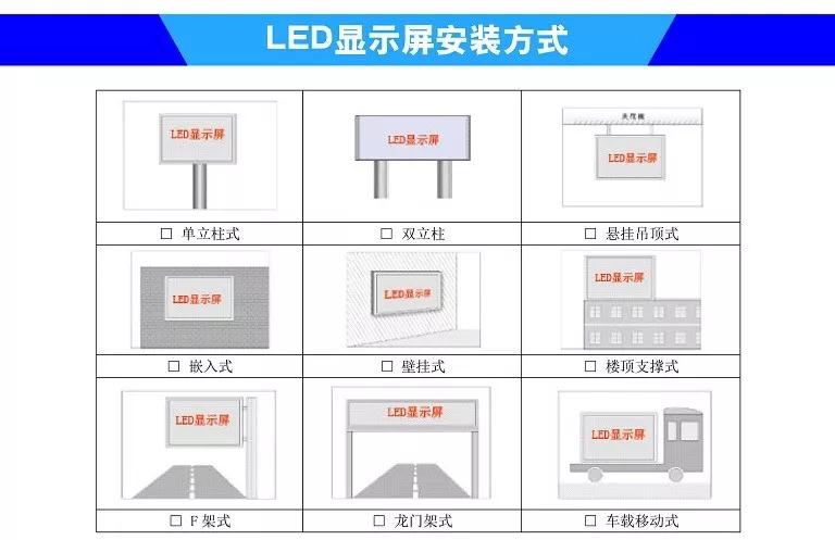 ① 显示屏安装所处位置的墙体状态、安装方式(镶嵌式、落地式、悬挂式、壁挂式、支撑式、支柱式)以及受力情况。并根据显示屏的具体尺寸,确认安装现场是否有障碍物妨碍显示屏的安装。如是镶嵌式安装的情况下,预留的安装槽是否合适;墙体如有装饰隔板,必须跟用户询问清楚墙体状况;如是立柱屏安装,一定要了解清楚地质情况。(地质层底部如有泥沙,时间长了,会导致立柱及屏体下沉甚至倒塌的风险,千万不能走马观花般看一遍。)