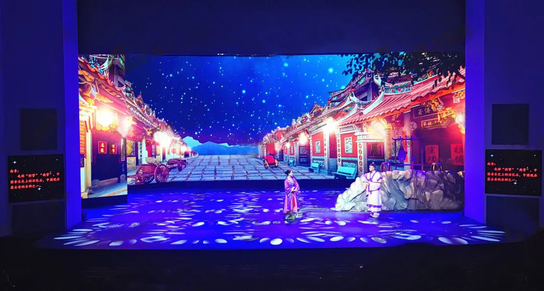 这样的舞台屏比较常见,从视觉效果上看,舞台既整体又大气。画质高清、色彩亮丽、细腻逼真的LED巨大舞台屏,配合舞台表演,将观众深深拉进故事的绮丽世界,沉浸并融入其中,感受作品本身的内在力量。