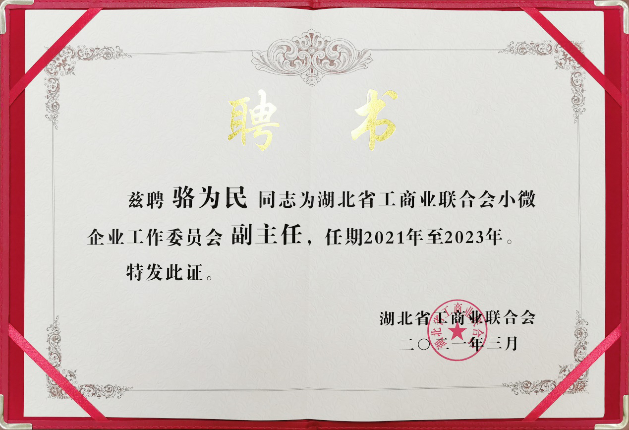 截至2020年底,全省共有市场主体571.35万户,其中新登记企业类市场主体23.1万户,实有企业类市场主体145.5万户,中小企业占比达99%以上。为落实新时代民营经济统战工作要求和全国工商联工作部署,推动改善小微企业发展环境,省工商联成立小微企业工作委员会,湖北弘驰电子工程有限公司董事长、武汉科锐芯电子科技有限公司董事长、武汉市洪山区珞南街街道商会会长骆为民等14名企业家,受聘为湖北省工商业联合会小微企业工作委员会副主任。