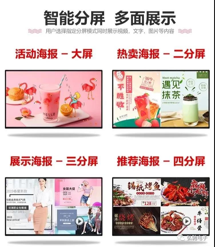 对比于传统的广告宣传媒介,弘驰电子智能壁挂广告机的多样性媒体推广,能够更好地引导顾客主动观看广告,因此被各类商户加以应用,且越做越受欢迎。那么,接下来给大家详细讲解一下。