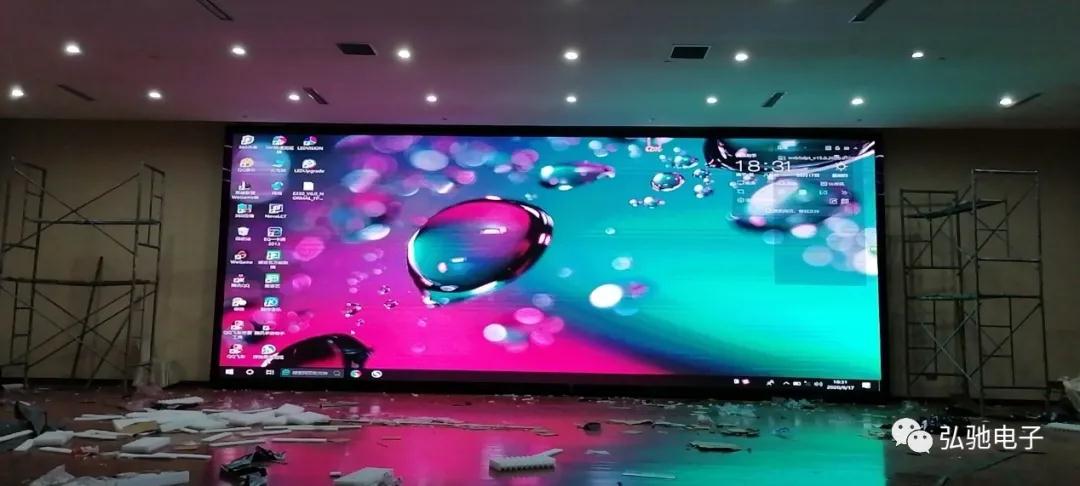 6、租赁室内LED显示屏在户外使用,遇到雨天一定要立刻断电,不急拆屏的话,就用事先准备好的防雨布迅速遮盖,待晴天把箱体拿出来晾晒。如果遇到持续阴雨,就要打开箱体后盖,用风机开冷风吹干。然后晾置于通风干燥的房间内8个小时以上。调低显示屏亮度且保证点亮屏体4个小时以上,充分把电子元件中的潮气散发出去。