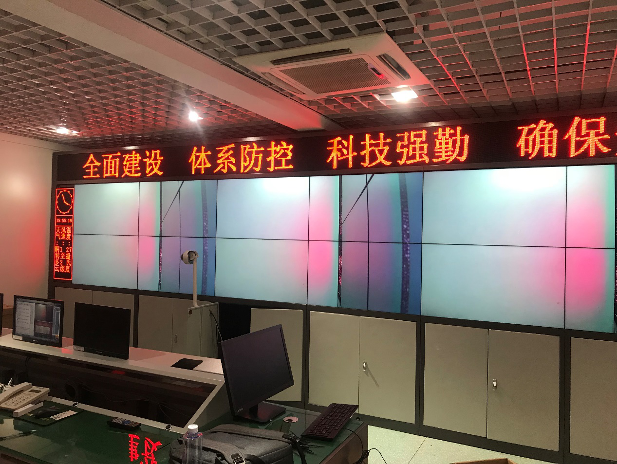 除此5点之外,在液晶拼接施工现场,安装调试要根据故障反映的现象来判断其原因,要重点检查设备的同步接口与传输线缆,以及对照信号源与显示终端的同步频率范围。如果图像有重影,检查传输线缆是否过长或者过细,解决办法是换线测试,或增加信号放大器等设备。如果聚焦不太理想,可以调整显示终端。面对问题的出现,首先要学会分析,才能更好的解决问题的根源,通过强有力的分析,缩短检查时间。